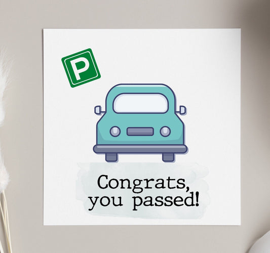 Congrats you passed your driving test card, personalised drivers test greeting card for friends and children, well done passed practical tes
