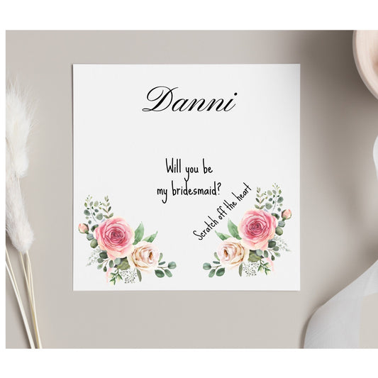 Scratch off bridesmaid proposal card, will you be my bridesmaid card, gold and florals, greeting card and envelope
