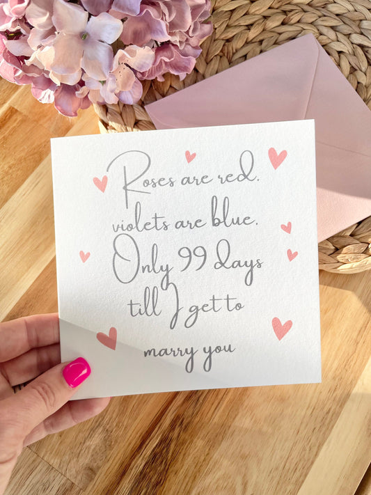 Roses are red, violets are blue Valentine’s Day card for engaged couples marrying in 2023. Personalised wedding countdown card for fiance