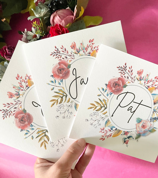 Personalised name in flowers card, bridesmaid or flowergirl proposal card, friend birthday card, wife Valentine’s Day card