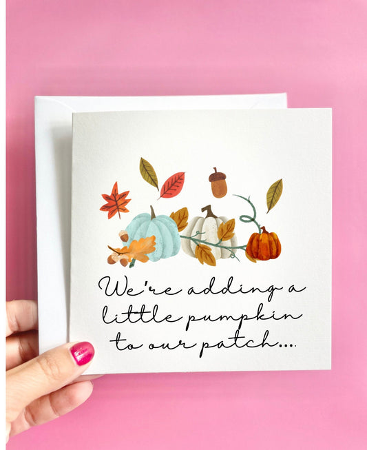Pregnancy announcement card, baby news cards, adding a pumpkin to our patch, autumn baby reveal card, card for baby scan photo