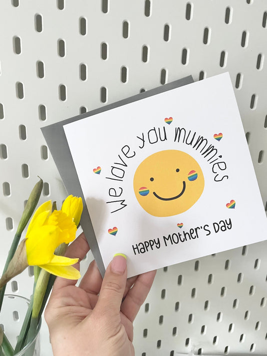 I love you mummies, novelty card for lesbian couple two mum parenting card from children.LGBTQ cards for same sex parents on Mother’s Day
