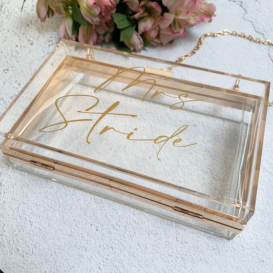 Bride handbag, bridal clutch bag, personalised clutch bag, newlywed handbag, new Mrs handbag, honeymoon accessories, gift for bride,for wife