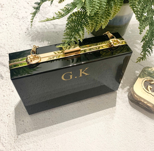 Black clutch handbag, personalised initial clutch, Christmas gift for wife, hen do handbag, bag for honeymoon, gift for her,Xmas gift
