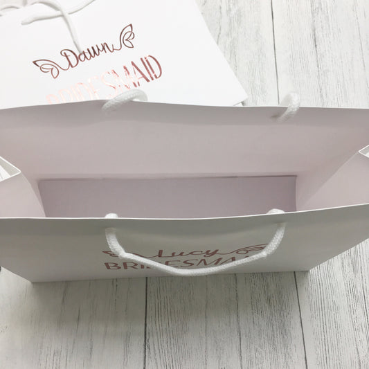 Bridesmaid gift bag, white gift bag, personalised bridesmaid gift, personalised wedding day gift bag, bridal party gift bag, wedding morning