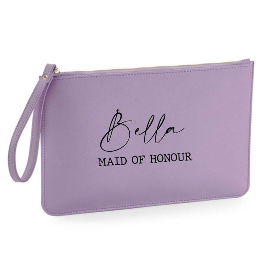 Bridesmaid pouch, bridesmaid proposal gift, personalised leatherette clutch wristlet bag, maid of honour gifts