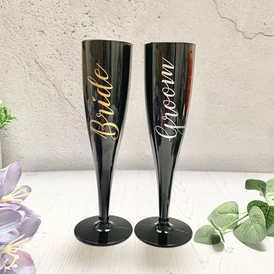 Black plastic, personalised champagne flute, personalised flute for bridesmaid gift, bridesmaid proposal, hen do, bachelorette parties