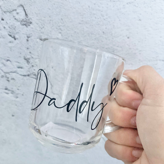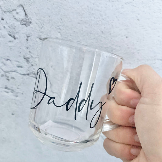 Personalised glass mug, daddy cup for Christmas gift, gift for him, personalised coffee mug, tea cup,male colleague gift, secret Santa gift