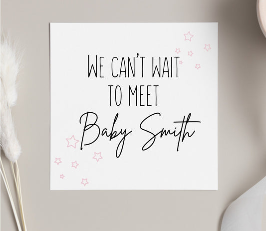 Baby card, personalised card for newborn baby, can’t wait to meet baby card, newborn cards, congrats on baby card, new parents card