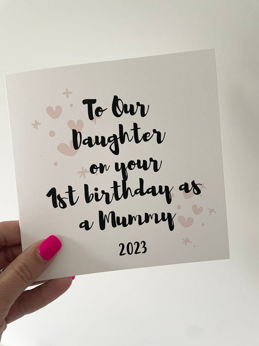 Daughter first birthday as a mummy card, mum 1st birthday card, new parent card, daughter bday card, new grandchild card